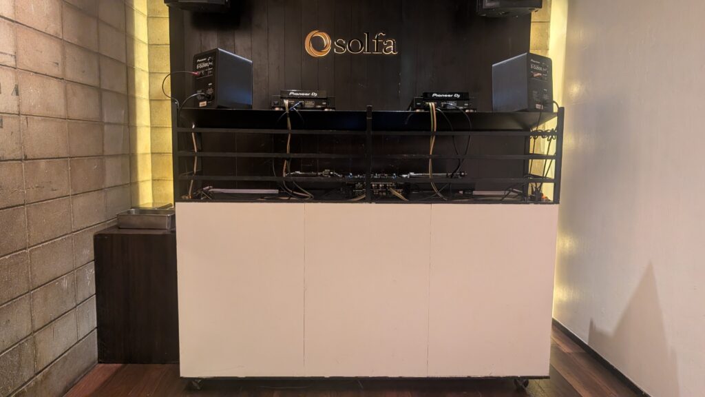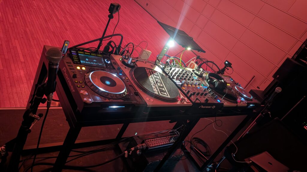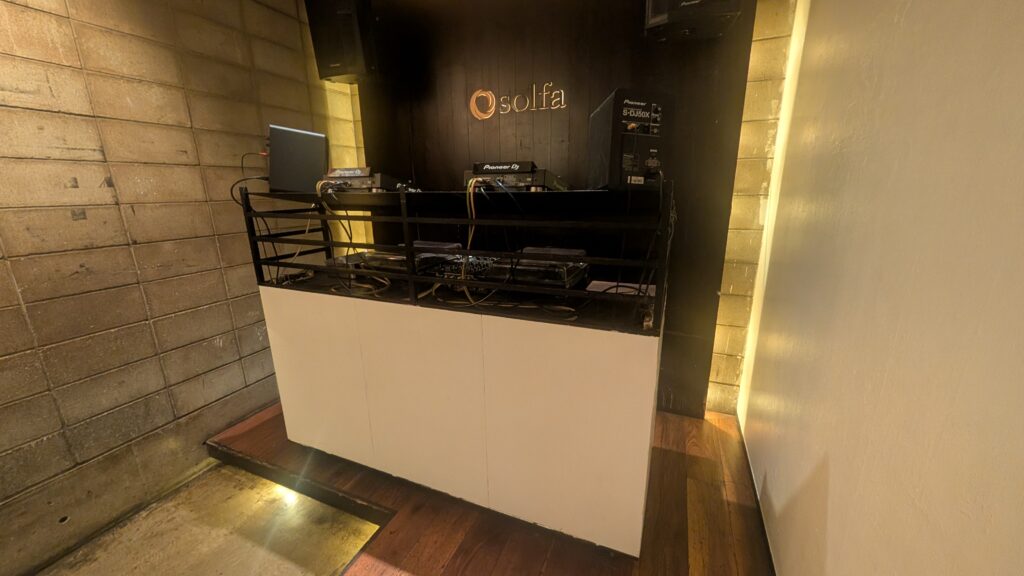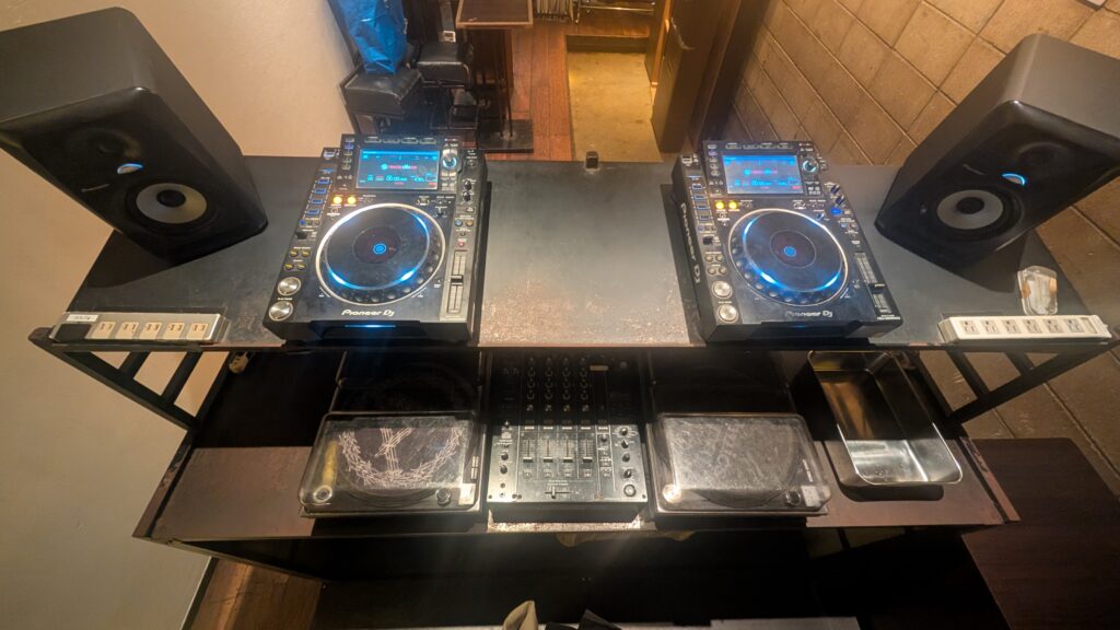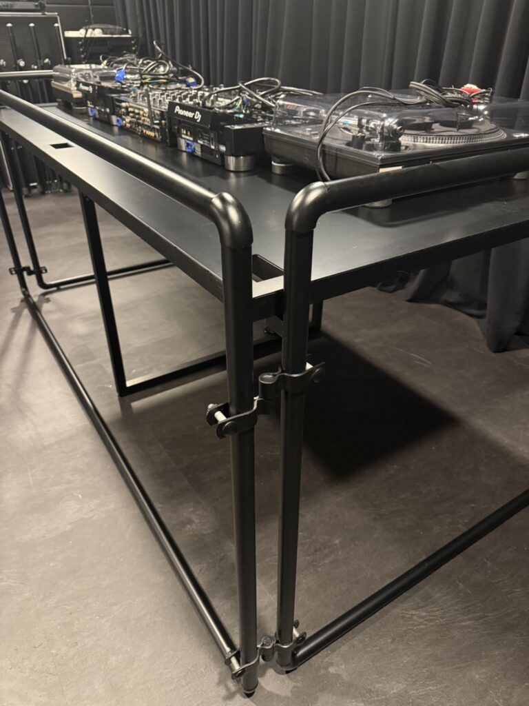Description:2段式のテーブル、移動可能なキャスター。さまざまなパーティーの機材構成に対応できる汎用性のあるテーブル。