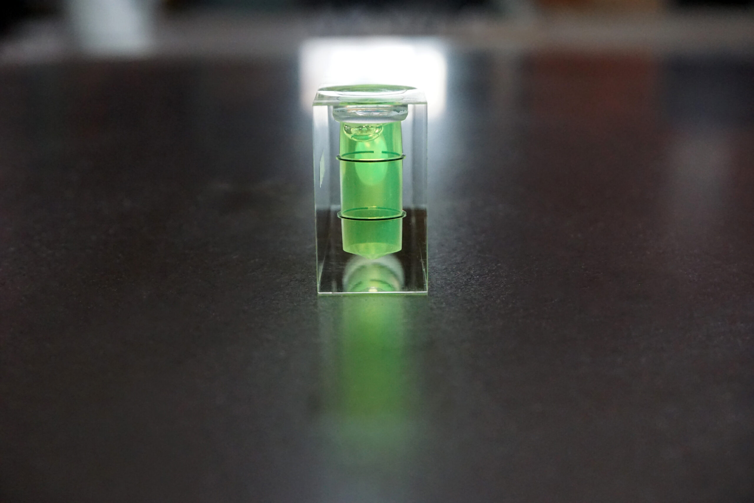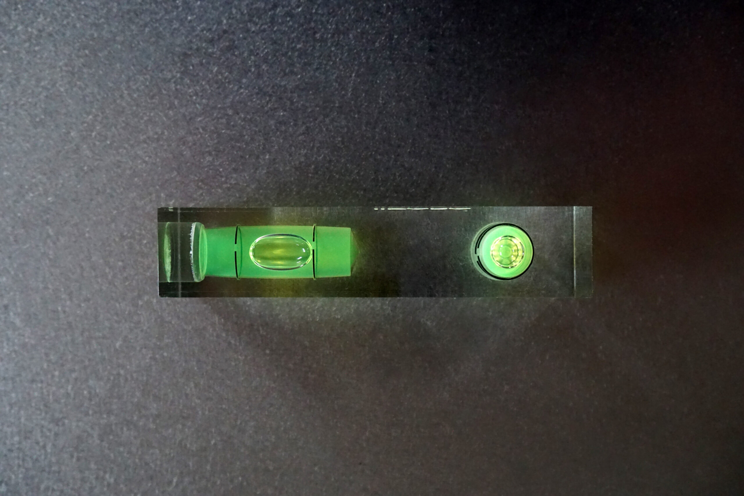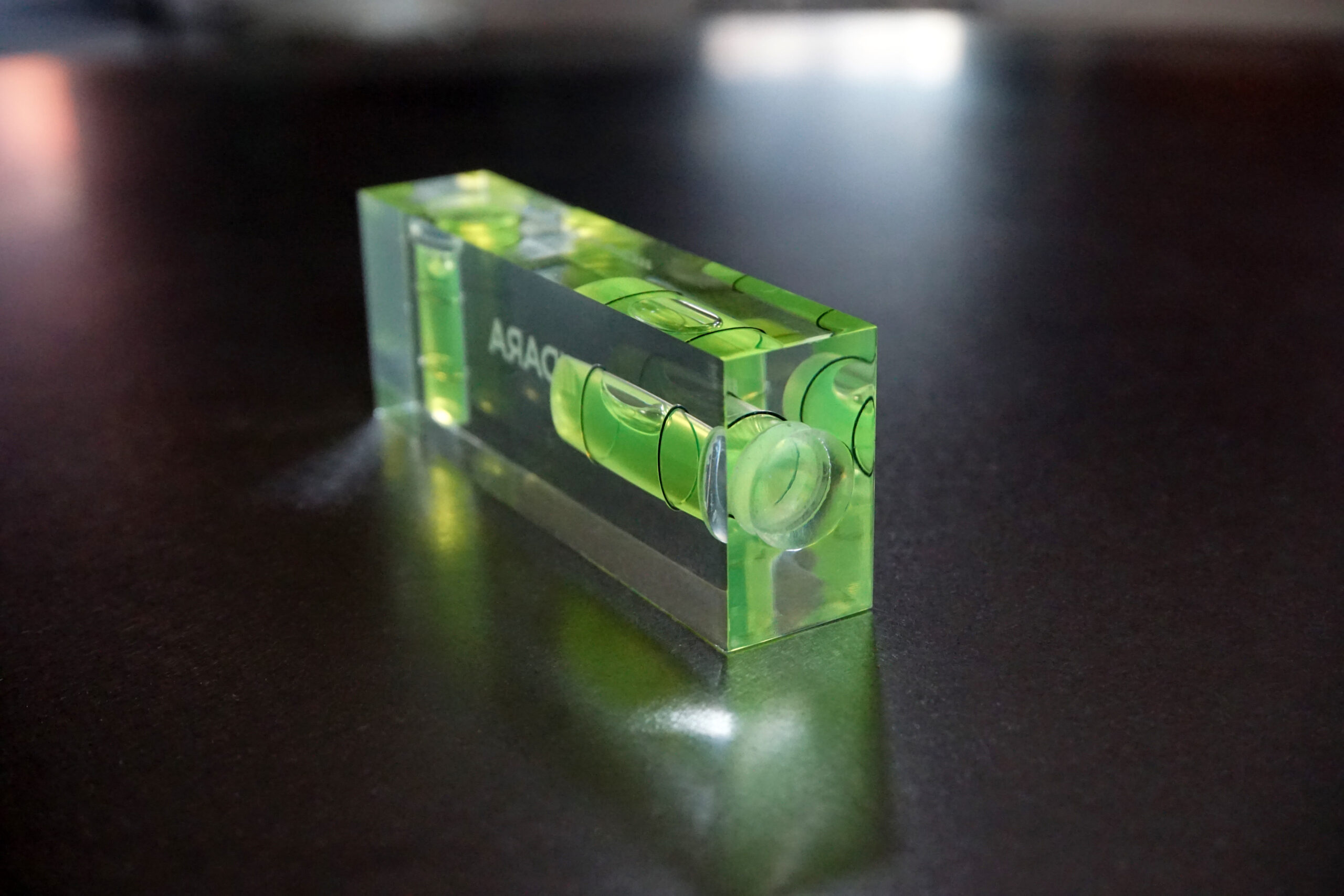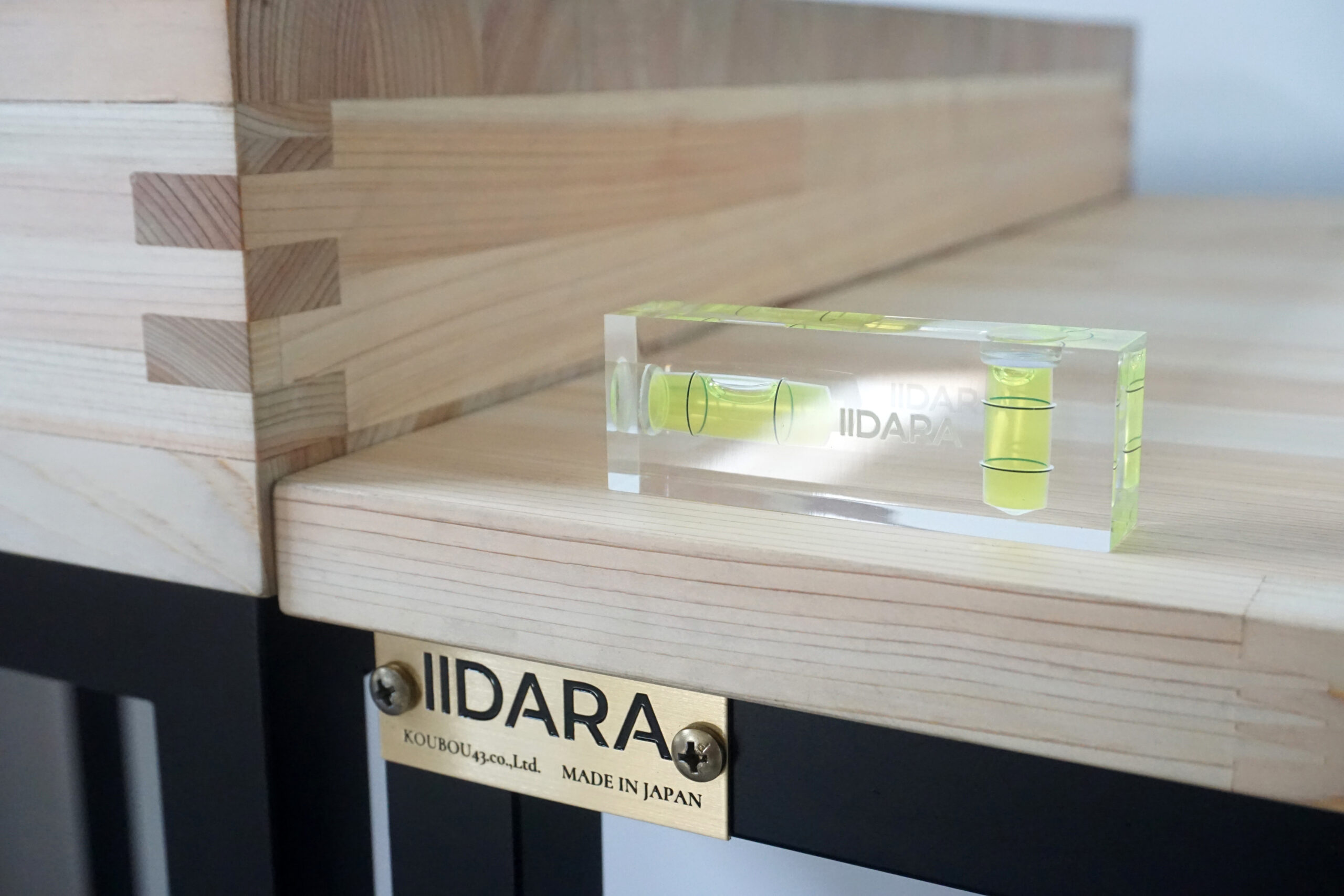 IIDARA特製、精密測定機器を手がけるアカツキ製作所の特注水平器です。ベースとなるのは、同社におけるアクリル製小型水平器、「平型アイベル水平器」。長年培われた確かな技術と精度をそのままに、IIDARAの視点でプロダクトとして再構成しました。